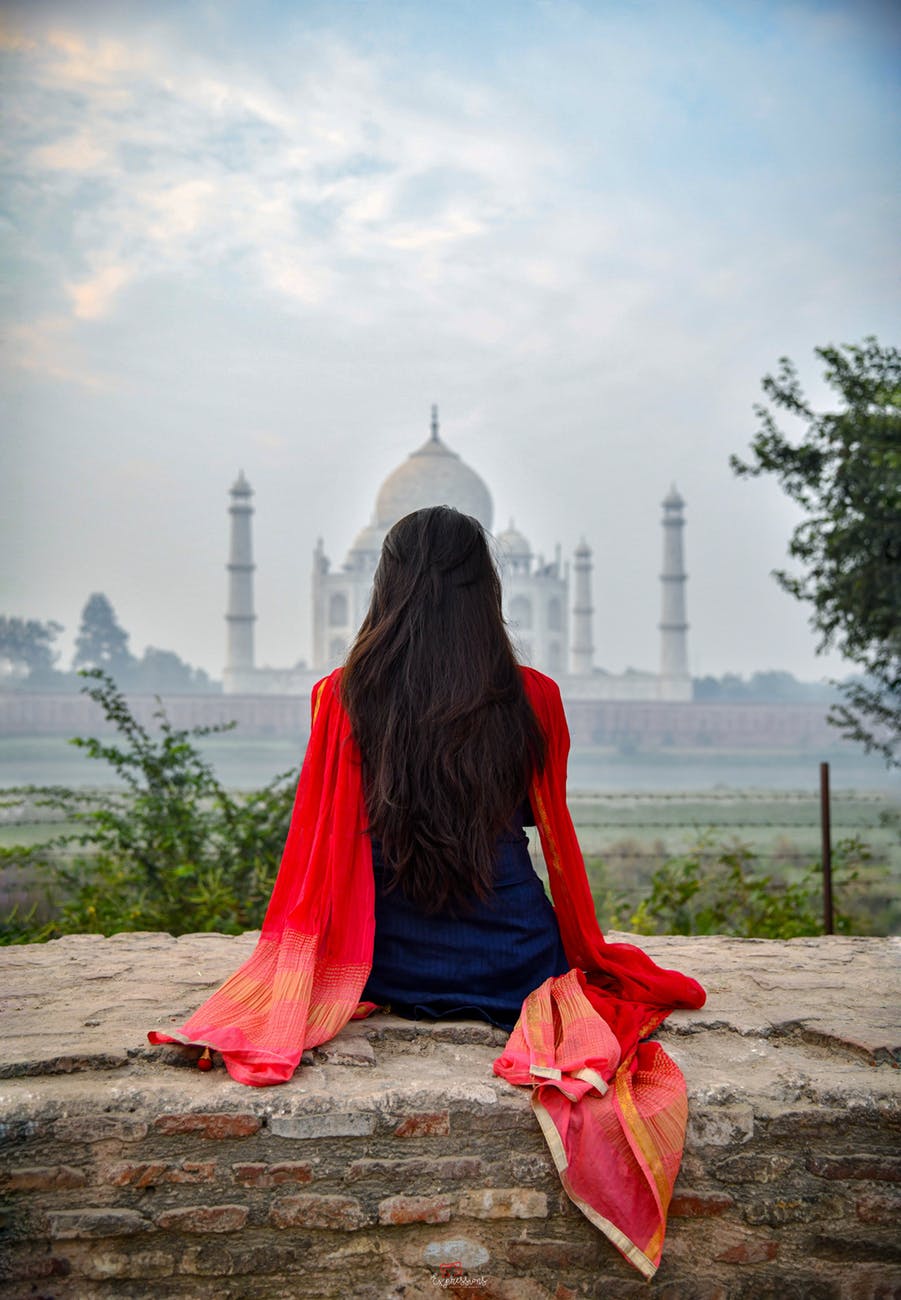 woman sitting on brickwall looking at taj mahal ינואר 27, 2020 901 × 1300 woman sitting on brickwall looking at taj mahal Photo by Vijay Sadasivuni on Pexels.com